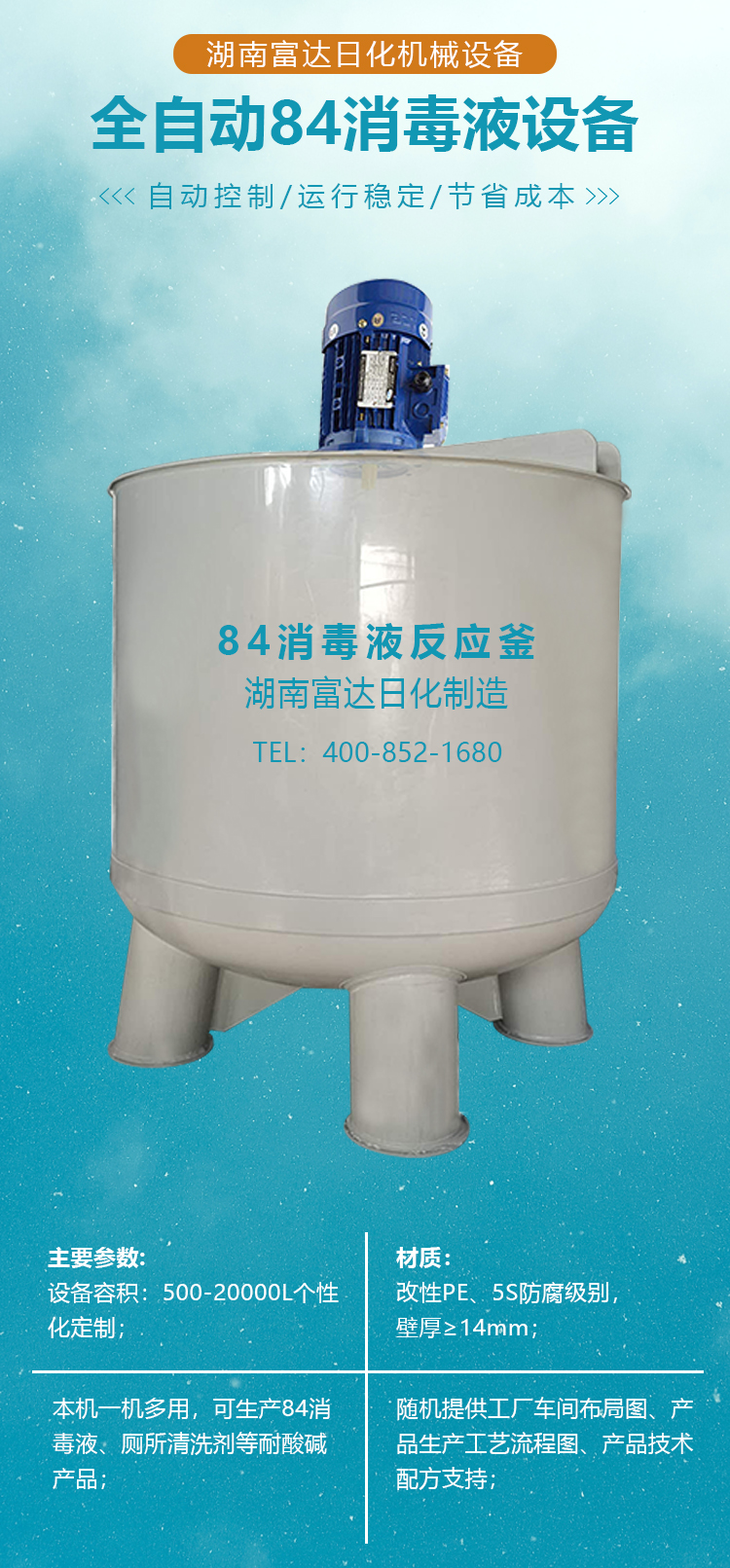 多項專利發明人王先軍 手機(jī):150-7483-5702 手機:195-7316-028884消毒液,是一種(zhǒng)應用廣泛,物美價廉(lián)的消毒藥水。因其發(fā)明於1984年,商品名稱(chēng)就叫做“84消毒液”。洗衣(yī)行業,簡稱(chēng)為“84”。 “84”其主要(yào)成分是(shì)次氯(lǜ)酸鈉。次氯酸鈉與空氣和水分接觸,會產生次氯酸,而次氯酸具(jù)有很強的氧化(huà)性(xìng),可以殺滅(miè)多種病菌和細菌。 但是,次氯酸鈉是一(yī)種不穩定的物質,不利於(yú)運輸與保(bǎo)存。於是,就利用其在強堿性的條件下相對穩定的性質,把次氯酸鈉和強堿“混合”在一起,起到易於保存的目的。因此,“84”消毒液原液,PH值在13以(yǐ)上,是(shì)一種堿性非常強的液體。