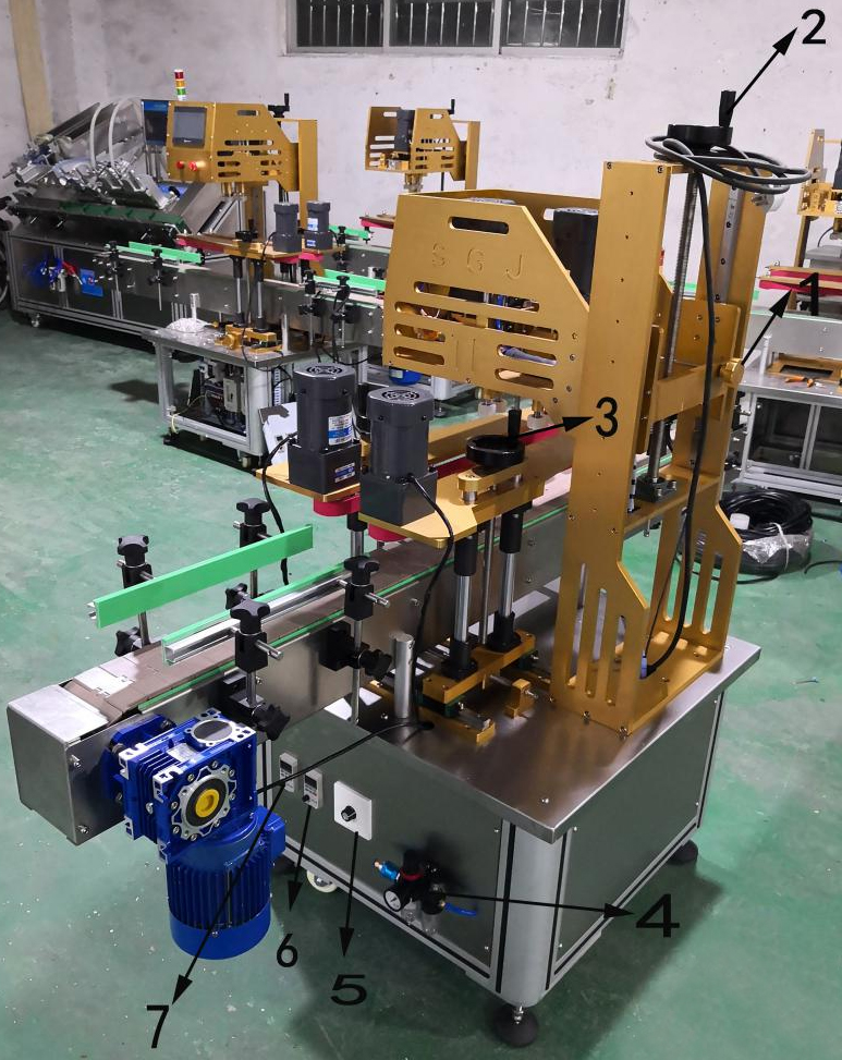 第一步:調節 2號 手柄 把(bǎ)旋蓋輪子高度(dù)調到瓶身蓋(gài)子(zǐ)高(gāo)度一樣